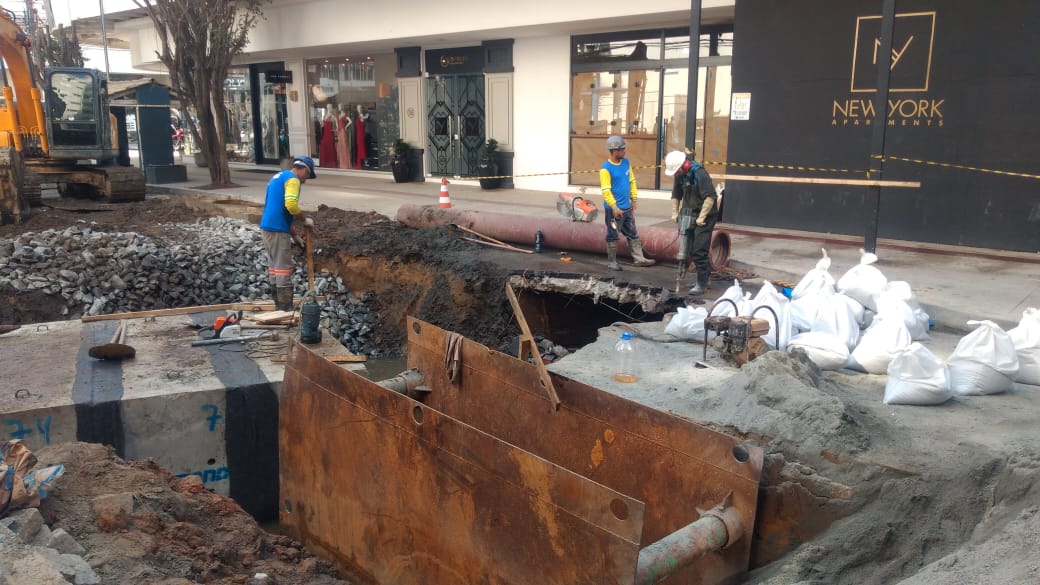 O serviço foi iniciado nesta terça-feira (20), e a tubulação deve chegar ainda nesta quarta. A previsão de término é de até 10 dias. Paralelo, foram coletadas amostras do líquido que chega nessa galeria para análise, e o laudo deve ficar pronto em breve.