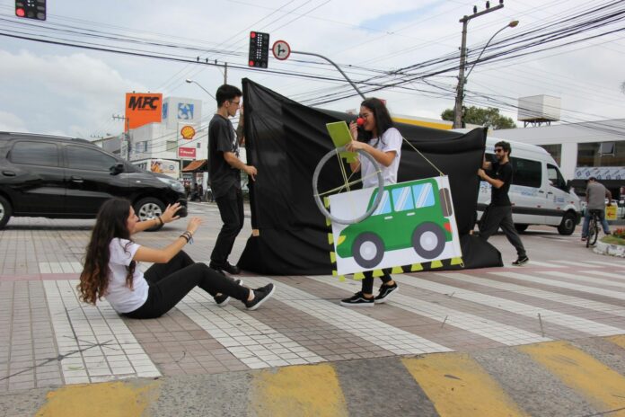 Os motoristas que passaram pela 4º Avenida, esquina com a Rua 1500, em Balneário Camboriú, na tarde desta sexta-feira (4), acompanharam a ação de conscientização no trânsito. O teatro com os temas “bebida e direção é um desastre”, “patinete regulamentado é sempre a via mais segura” e “salve esta mensagem: não use celular ao volante” foi apresentado aos condutores parados na sinaleira, entre as 14h e 18h.