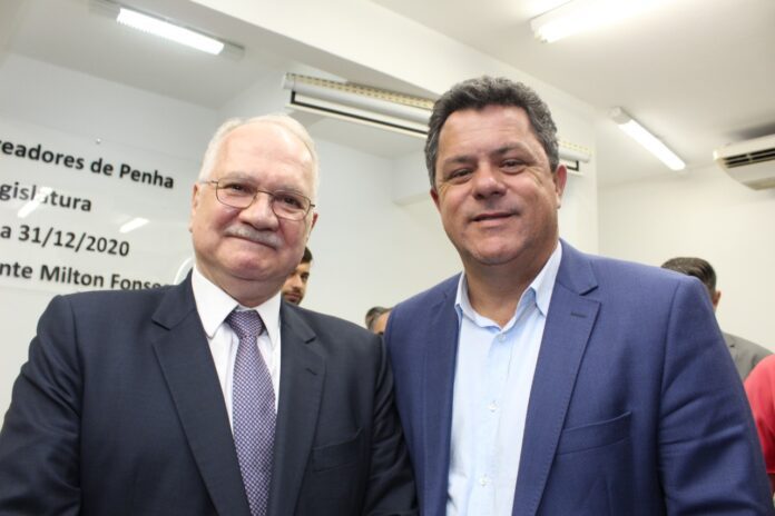 O ministro Luiz Edson Fachin, relator da Lava Jato no Supremo Tribunal Federal (STF), esteve em Penha na noite desta segunda-feira (16) participando de sessão solene em homenagem à esposa dele, a desembargadora Rosana Fachin, do Tribunal de Justiça do Paraná (TJPR). Ela recebeu o título de Cidadã Honorária de Penha do presidente da Câmara de Vereadores, Italiano Dal Posso (MDB).