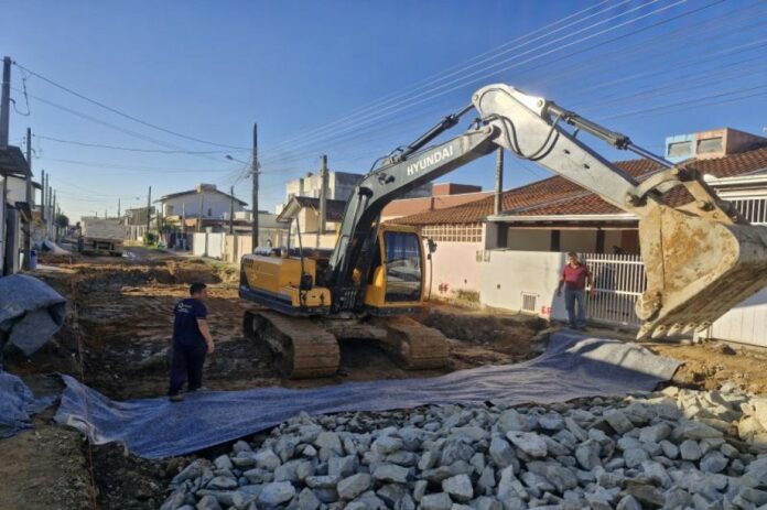 A Secretaria Municipal de Obras iniciou as melhorias na rua Arquiteto Luiz Augusto Trojan, no bairro Santa Regina. A drenagem será ampliada em toda extensão da via. A rua de chão batido também ficará para trás com a pavimentação em lajotas no seu 1,75 quilômetro. Serão 10 mil metros quadrados em lajotas sextavas e melhoria nas calçadas.