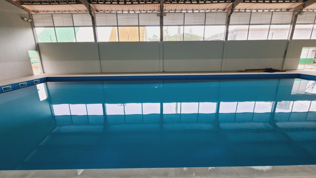 A obra, que contou com um investimento superior a R$ 1 milhão, apresenta uma estrutura moderna com possibilidade para até cinco raias, medindo 21 metros de comprimento por 10 metros de largura, além de um sistema de aquecimento de água. Além da piscina, o complexo inclui banheiros e um depósito, oferecendo uma infraestrutura completa para aulas de natação e hidroginástica.