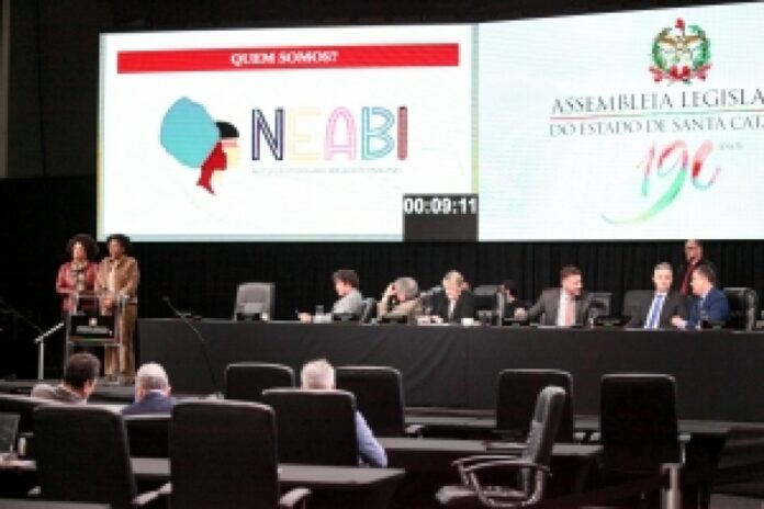 Elas também apresentaram o programa de ações afirmativas Bolsas Equidade Racial da Unesc. O programa foi implementado em 2022 e oferece bolsas de estudo para alunos pretos, pardos, indígenas e quilombolas. Segundo as pesquisadoras, antes do Neabi havia em média de 60 alunos negros na Unesc e hoje têm uma média de 300, matriculados pelo programa.