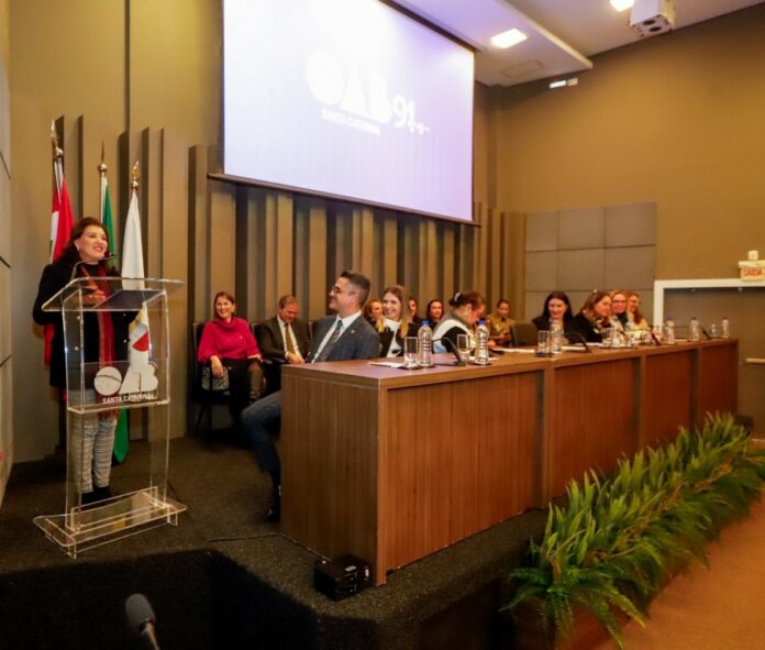A presidente da OAB/SC, Cláudia Prudêncio, conduziu e mediou o encontro, que contou também com a desembargadora do Tribunal de Justiça de Santa Catarina, Hildemar Meneguzzi de Carvalho, representando o Poder Judiciário; e a ex-deputada estadual, Ada de Luca, representando o Poder Legislativo.