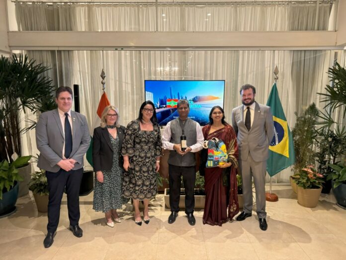 Em evento promovido pelo Imbrics (Fórum Internacional dos Municípios dos Países dos BRICS) nesta terça-feira (16) na Embaixada da Índia, a secretária de Articulação Nacional, Vânia Franco, e o diretor de Atração de Investimentos da InvestSC, Rodrigo Prisco, apresentaram ao embaixador do país, Suresh Reddy, e à embaixatriz, Sneha Reddy, os potenciais do estado catarinense.