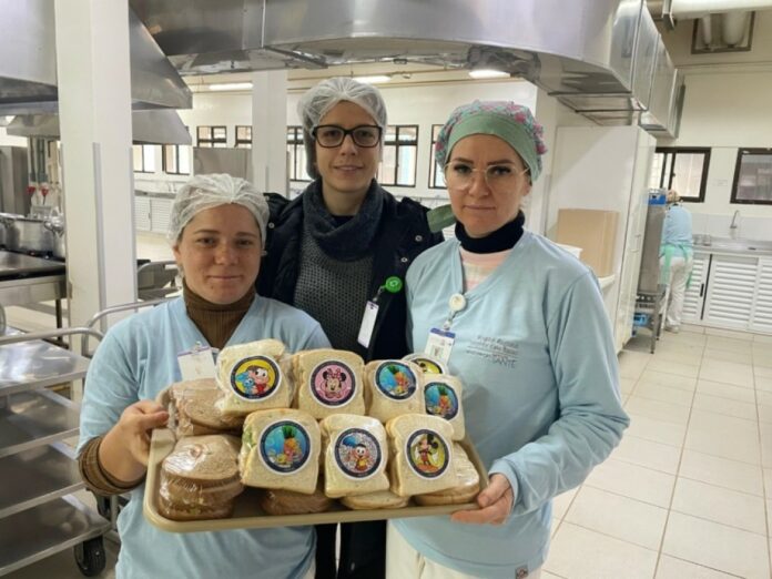Pensando em promover práticas de alimentação saudável entre os pacientes pediátricos, o Hospital Regional Terezinha Gaio Basso (HRTGB), por meio do setor de Serviço de Nutrição e Dietética (SND) estão decorando os lanches e sobremesas com adesivos de personagens e frases motivadoras, para serem entregues aos pequenos.