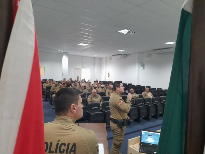 O encontro reuniu centenas de policiais na tarde desta quinta-feira, 24, de forma presencial e online pelo Estado, a partir do evento sediado no auditório da Secretaria de Estado da Segurança Pública de Santa Catarina (SSP-SC), em Florianópolis. A ideia foi concentrar a capacitação justamente neste período em que os estudantes estão de férias. Ministraram os trabalhos policiais militares da coordenação da Rede de Segurança Escolar da PMSC.