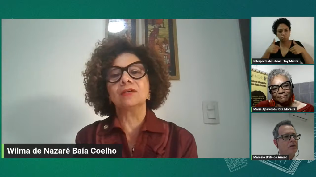 A mediadora do primeiro encontro foi Maria Aparecida Rita Moreira, sócia-fundadora da AENSC, pós-doutora em Educação e professora aposentada da Rede Estadual de Ensino de Santa Catarina, que representou a sociedade civil. Já a conferencista foi a diretora de Políticas de Educação Étnico-racial Educação Escolar Quilombola, do Ministério da Educação, Wilma de Nazaré Baia Coelho.