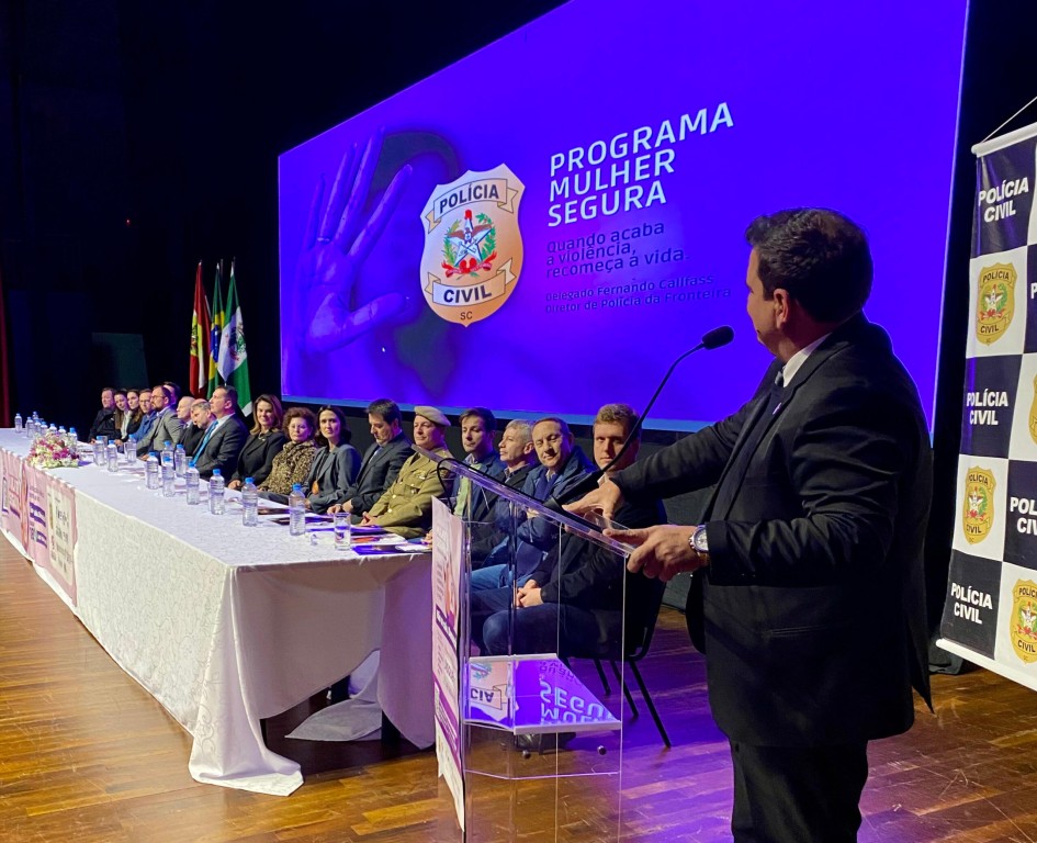 A Diretoria de Polícia da Fronteira (Difron) da Polícia Civil de Santa Catarina lançou na noite de segunda-feira, 26, em Chapecó, o Programa Mulher Segura, em prol das mulheres vítimas de violência doméstica. Idealizado pela DIFRON, o programa conta com uma série de ações que buscam alertar as mulheres sobre o ciclo da violência doméstica e como acessar os canais oficiais para pedir ajuda.