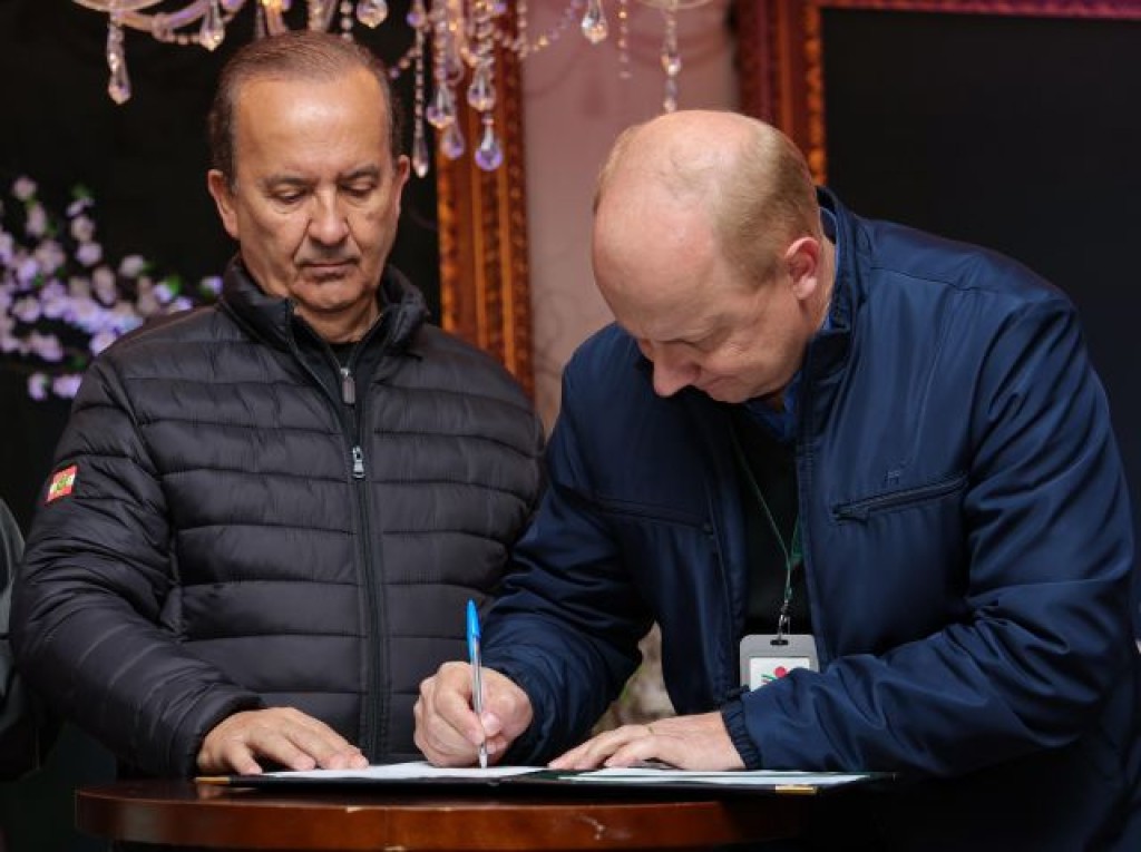 O presidente da Epagri Dirceu Leite assinou o contrato na abertura da 24ª Festa Nacional da Maçã (Foto: Roberto Zacarias/Secom)