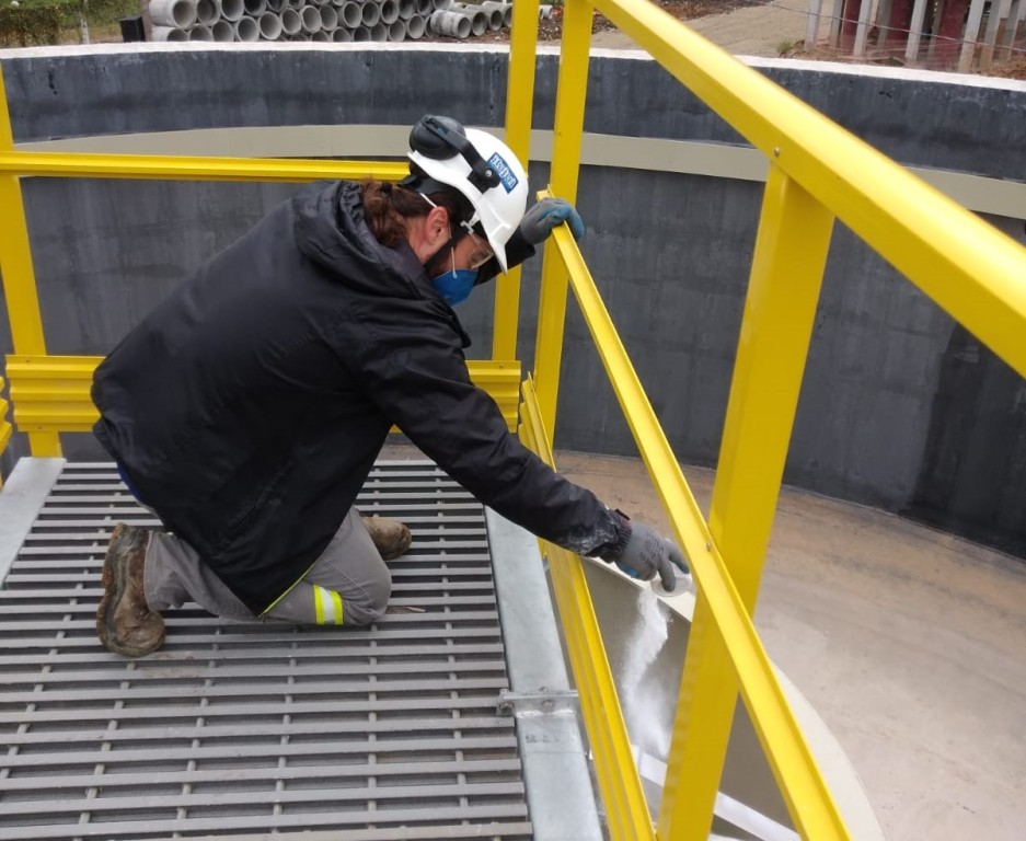 “São aplicados dois tipos de cloro, em pó e em pastilha. O em pó age imediatamente se diluindo na água, mas tem a desvantagem de evaporar rápido. Por isso, também colocamos a pastilha, que demora a ter uma ação inicial, mas tem efeito mais duradouro”, explica o biólogo Tomás Honaiser Rostirolla, que atua na supervisão ambiental das obras do SES Saco Grande.