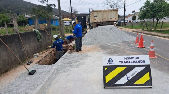 Para reforçar o abastecimento no Bairro Potecas, em São José, a CASAN (Companhia Catarinense de Águas e Saneamento) iniciou nesta quarta-feira (18) a obra de uma nova adutora. Serão instalados 2,1 km de tubulação para ampliação da rede, em um investimento de R$ 900 mil, que vai beneficiar cerca de seis mil moradores, principalmente na região dos loteamentos Jardim Botânico e Tarumã.