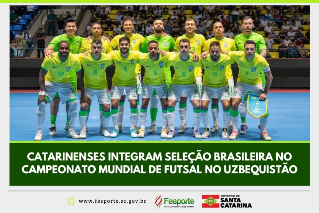 A seleção brasileira de futsal masculino que está na disputa do campeonato mundial da modalidade no Uzbequistão conta com a presença de cinco atletas catarinenses no elenco. Nesta terça-feira, 24, a seleção volta a quadra para a disputa da fase oitavas de final.