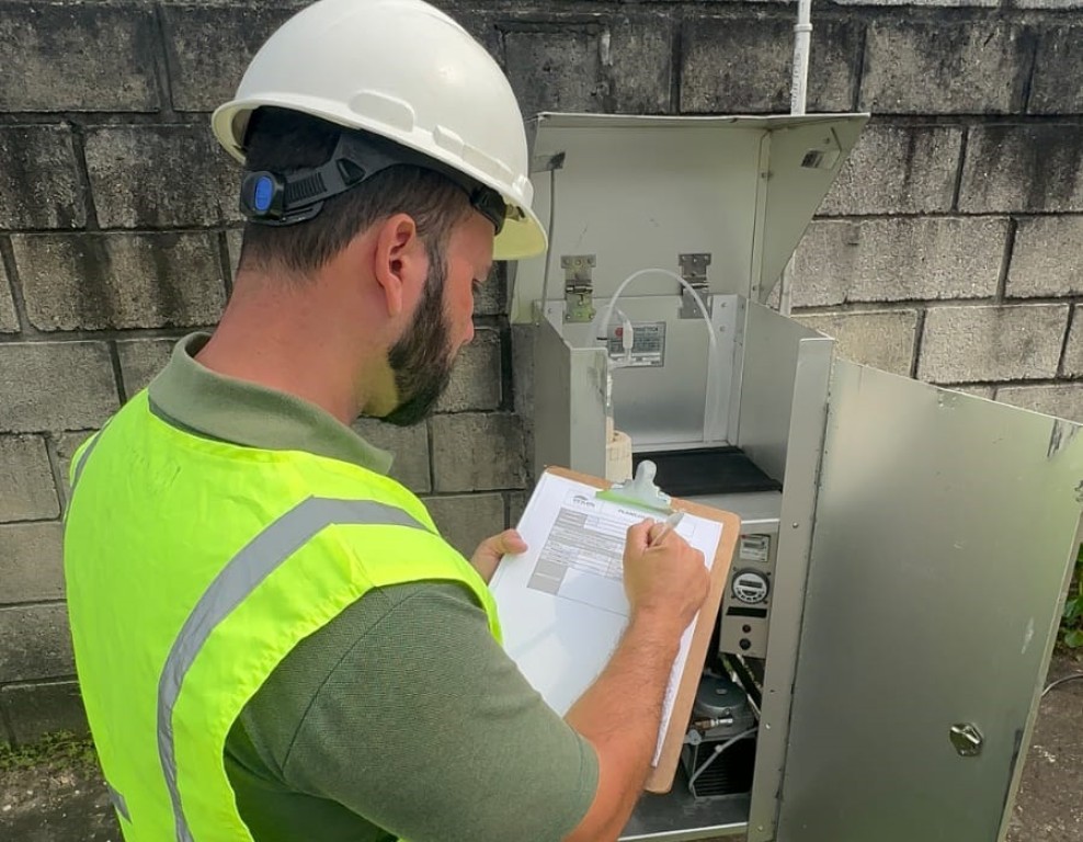 Uma empresa especializada realiza o monitoramento com o equipamento chamado de Trigás, um amostrador de gases de pequenos volumes que faz a sucção do ar atmosférico e coleta os compostos de Sulfeto de Hidrogênio (H2S). Depois essas amostras são enviadas para análise em laboratório.