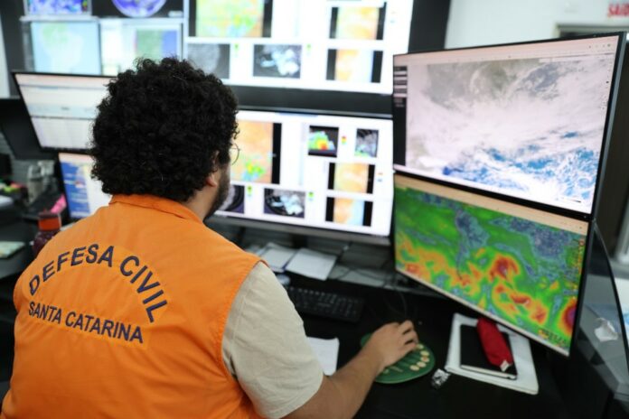 A Defesa Civil de Santa Catarina recomenda que a população acompanhe as atualizações climáticas pelos canais oficiais e siga as orientações de segurança, evitando áreas de risco durante o período de chuvas intensas.