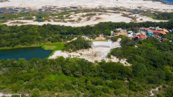 A reforço de dunas e a recuperação da vegetação de restinga são novas ações da Casan integradas ao Plano de Recuperação Ambiental iniciado logo após o acidente junto à Lagoa de Evapoinfiltração (LEI) em 2021. A região já recebeu um muro verde de contenção e passou por dragagem do fundo lamo-arenoso da LEI que recebe o efluente tratado do Sistema de Esgotamento Sanitário.