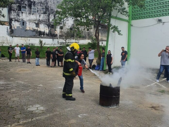 Já na parte teórica, eles aprenderam sobre a ciência do fogo, a classificação dos tipos de incêndios, métodos de extinção e o uso adequado de extintores de incêndio.