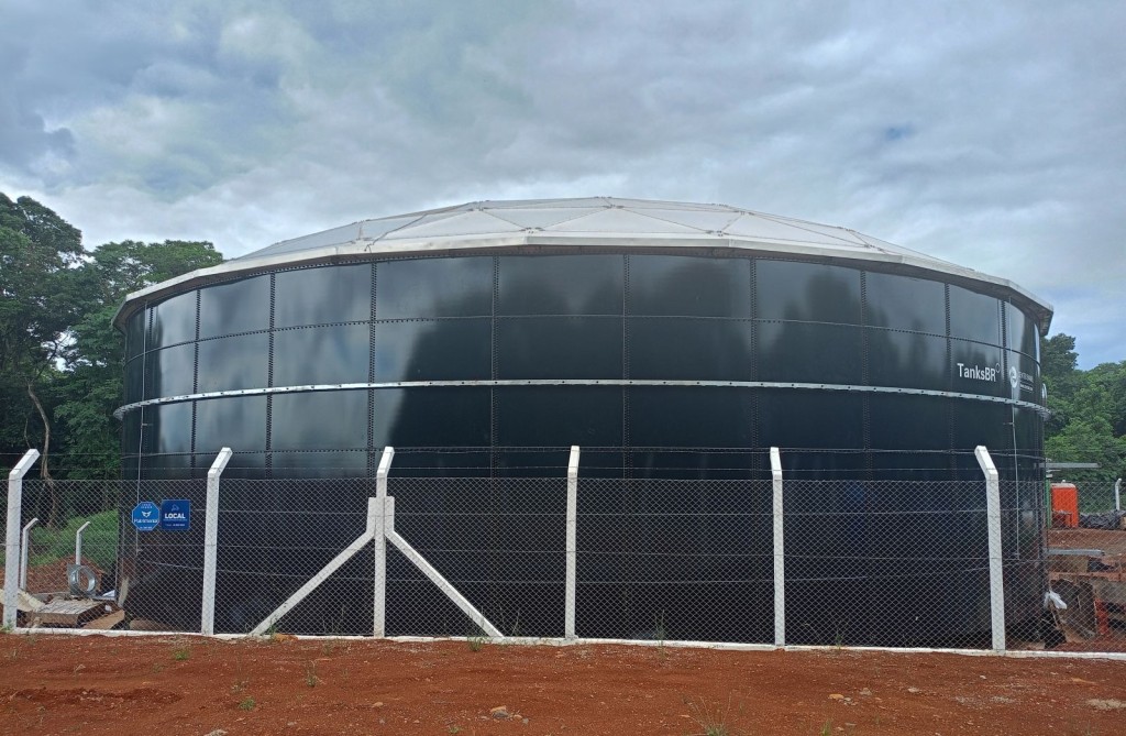 Na atual etapa da obra, são instalados os dois últimos anéis de placa de aço, que compõem a parede do tanque. A previsão para a conclusão é no mês de novembro, com o reservatório já sendo posto em operação até dezembro.