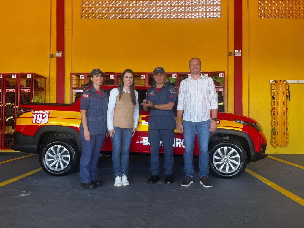 A nova viatura administrativa foi adquirida com recursos de emenda parlamentar da deputada federal Caroline De Toni no valor de R$100 mil. O veículo, um Fiat Strada Freedom CD13, foi adaptado e plotado como viatura oficial do CBMSC.