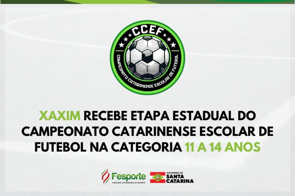 O governo do estado de Santa Catarina por intermédio da Fesporte ealiza entre os dias 31 de outubro a 4 de novembro a etapa estadual do Campeonato Catarinense Escolar de Futebol (CCEF) na categoria 11 a 14 anos que será realizada no município de Xaxim.