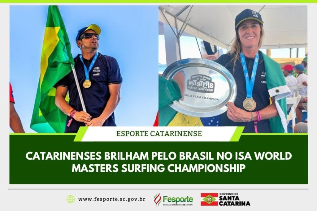 Os surfistas catarinenses, Diego Rosa e Jacqueline Silva brilharam por Santa Catarina durante a disputa do ISA World Masters Surfing Championship em El Salvador na última semana.