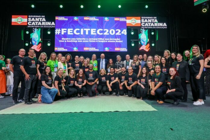 A cerimônia de abertura da XVI Feira Estadual de Ciência e Tecnologia (FECITEC) marcou a noite desta terça-feira (5), em Criciúma. O evento aconteceu no Centro de Eventos AM Master Hall e contou com a presença do secretário de Estado da Educação, Aristides Cimadon, da secretária adjunta de Estado da Educação, Patrícia Lueders, e outras autoridades do colegiado do Governo de Santa Catarina.