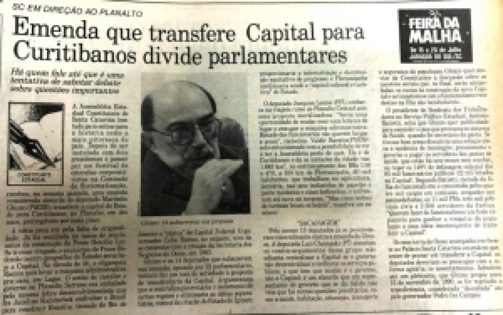 O jornal “A Notícia”, de Joinville, divulgou, em julho de 1989, que 22 dos 40 deputados eram favoráveis à troca da capital. Para pôr fim à controvérsia, o deputado João Romário chegou a propor a mudança do Centro Administrativo do Governo do Estado para a região continental de Florianópolis. Mas, ao final, prevaleceu a ideia da consulta popular.