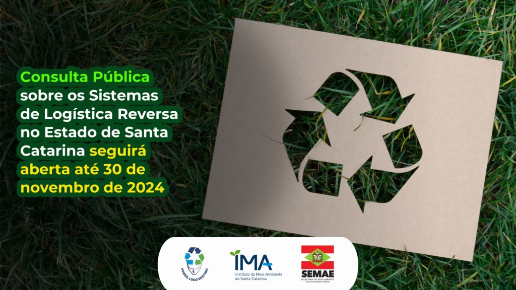 O Instituto do Meio Ambiente de Santa Catarina (IMA) e a Secretaria de Estado do Meio Ambiente e Economia Verde (Semae) informam que a Consulta Pública para a proposta de Decreto que regulamenta a estruturação, implementação e operacionalização dos sistemas de logística reversa na área de abrangência de Santa Catarina ficará aberta até o dia 30 de novembro de 2024.