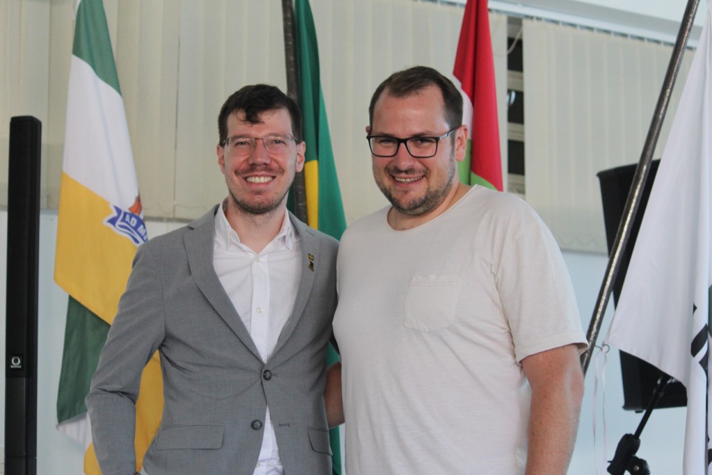 Jakob também acompanhou Guilherme Dilarri em uma visita à Secretaria de Cooperação Interinstitucional e Internacional (SCII) da Udesc em Florianópolis, onde dialogaram sobre a formalização de um convênio com a RWTH Aachen University para mobilidades de estudantes e professores e outras atividades acadêmicas.