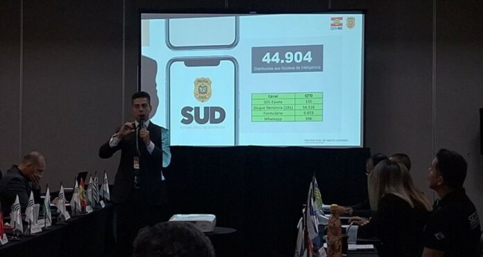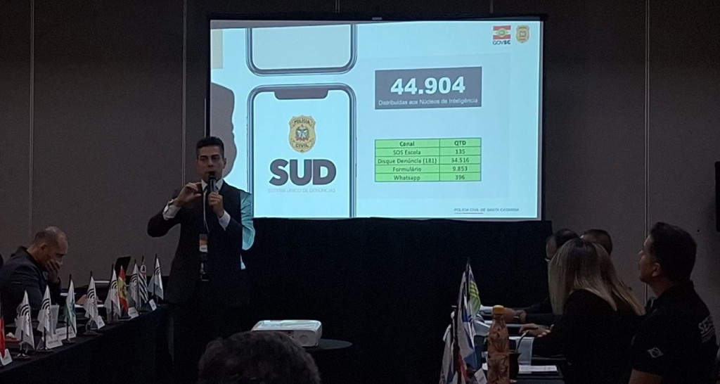 Santa Catarina foi destaque durante o Encontro Nacional das Centrais de Disque Denúncia realizado entre os dias 26, 27 e 28, no Rio de Janeiro. Na oportunidade, o diretor de Inteligência da PCSC, delegado Gustavo Madeira, apresentou o Sistema Único de Denúncia (SUD) ferramenta que dá agilidade no recebimento e encaminhamento da denúncia para o setor competente. Outro ponto interessante do SUD é que as mensagens em áudio são automaticamente convertidas em texto por meio da IA, liberando assim o policial para atuar em sua atividade fim.