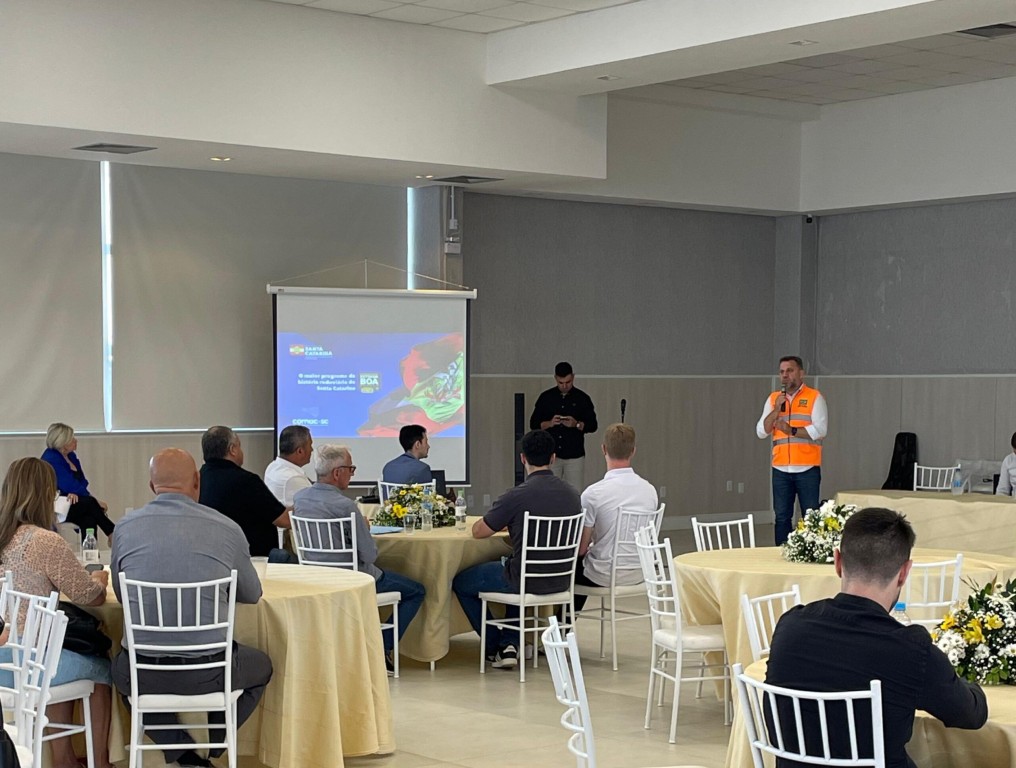 O secretário da Infraestrutura e Mobilidade (SIE), Jerry Comper, apresentou um balanço detalhado do Programa Estrada Boa durante a Assembleia dos Prefeitos da Grande Florianópolis, nesta sexta-feira 29, em Palhoça.
