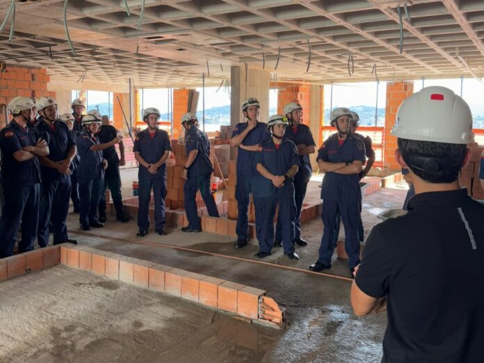 A disciplina de Estruturas e Materiais de Construção, realizada entre 30 de janeiro e 5 de fevereiro, incluiu capacitação sobre materiais e métodos construtivos no Brasil e o comportamento desses elementos em incêndios. Os alunos participaram de visitas técnicas à obra da empresa WOA, em São José, e ao Laboratório de Materiais de Construção Civil do Instituto Federal de Santa Catarina (IFSC), onde realizaram ensaios de análise de materiais.