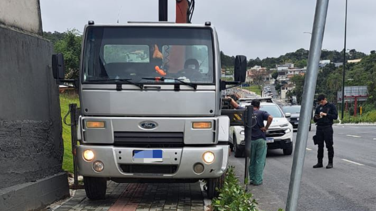 Caminhão é apreendido por estacionar sobre calçada e danificar passeio em...