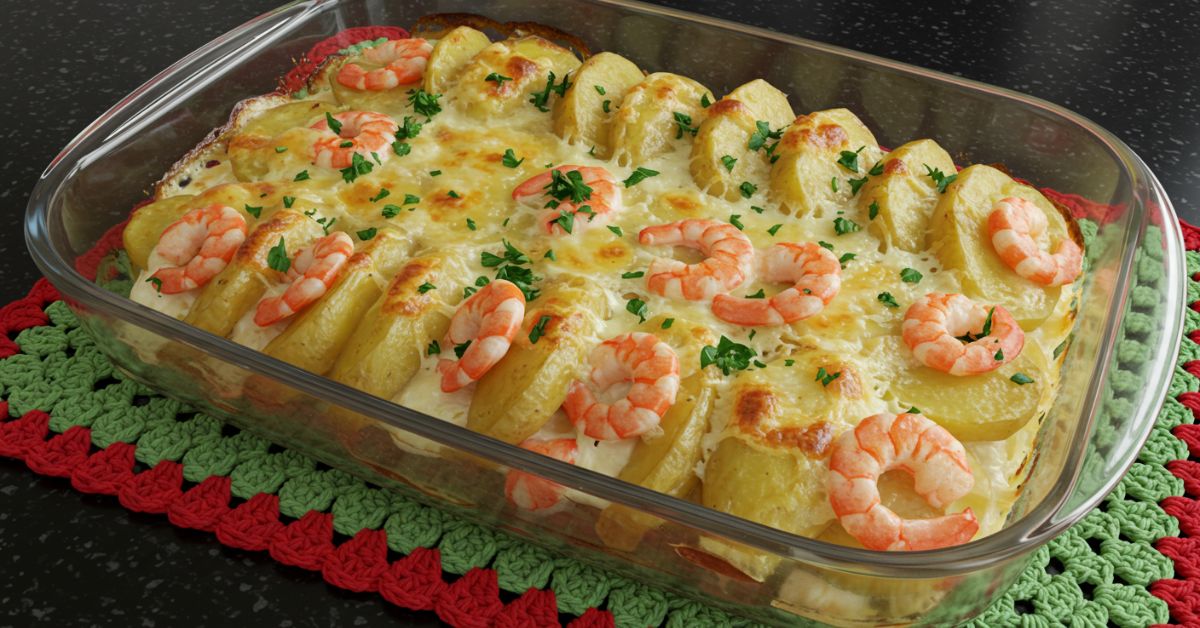 Batata Gratinada com Camarão ao Molho Branco – Irresistível