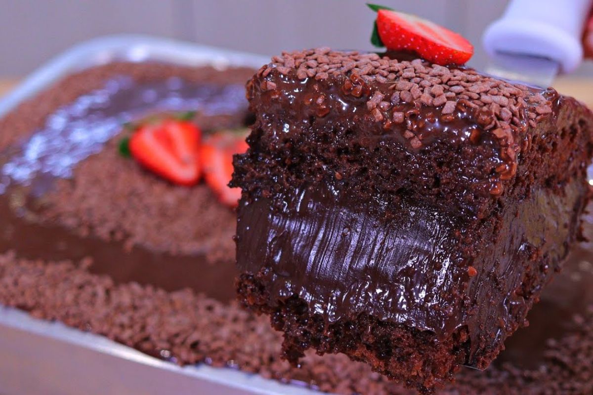 Bolo de Chocolate Fofinho com Cobertura Cremosa