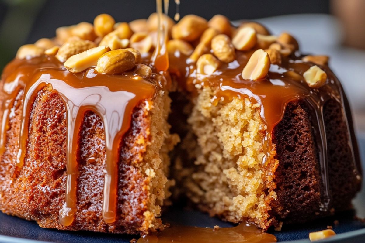 Bolo de Amendoim com Calda de Caramelo