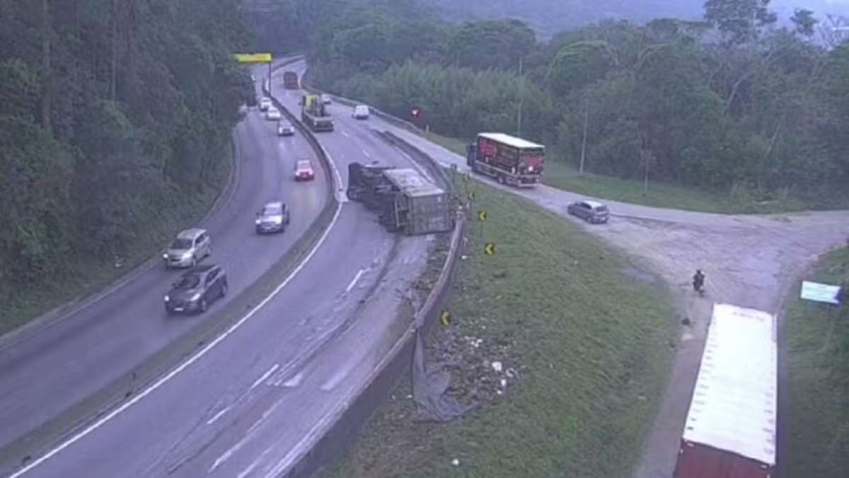 Caminhão Tomba na BR-101 e Provoca Caos no Trânsito no Morro...