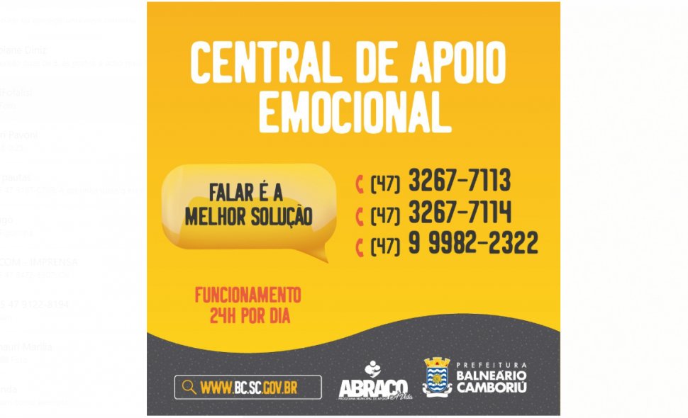 Central de Apoio Emocional realizou mais de 700 atendimentos em Balneário...