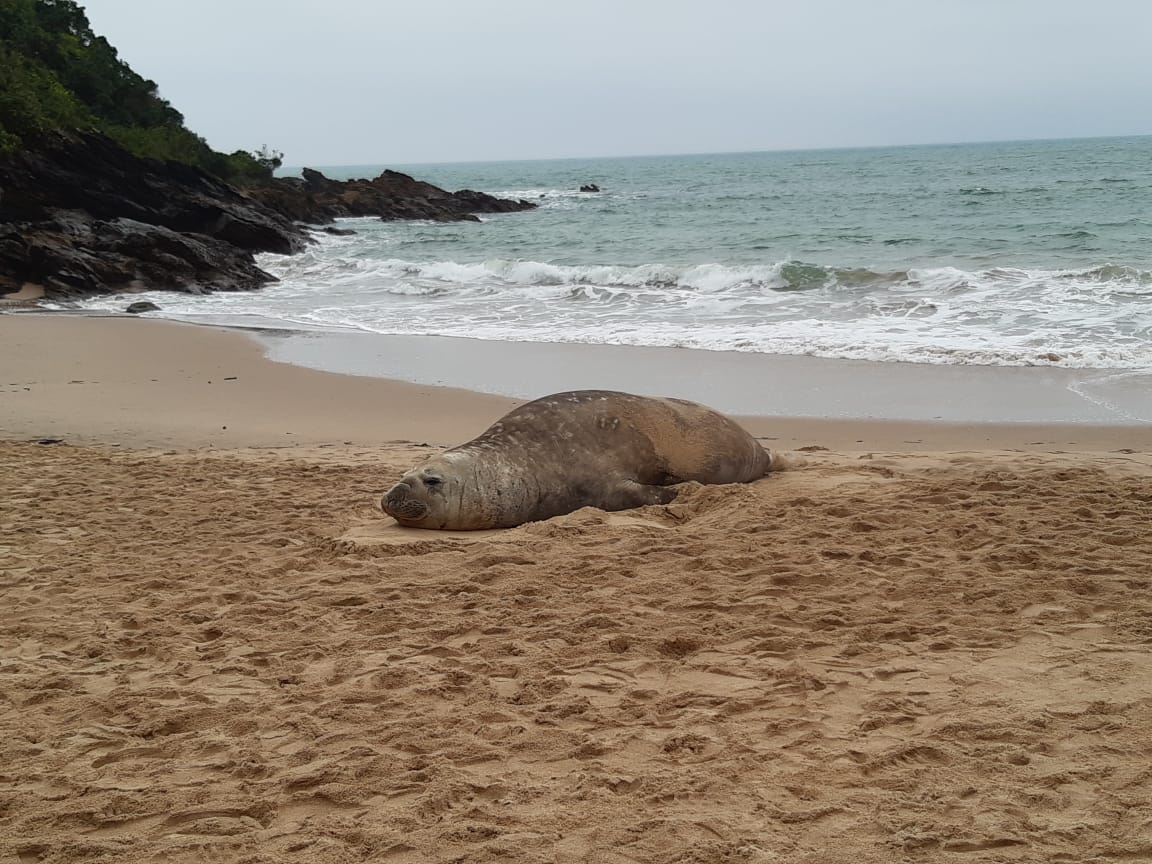 Elefante-marinho é encontrado na Praia do Buraco